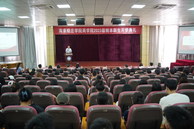 金秋送爽迎学子,丹桂飘香启新篇。近日,南京晓庄学院商学院围绕“以心连新,共赴未来”主题,圆满完成2025级新生迎新工作。并在中心报告厅隆重举行2025级新生开学典礼。商学院党委书记马传浩、院长赵彤、副院长王荣、院长助理张倩、教务办主任陶敏、学工办主任刘眉,以及新生班主任、全体辅导员与2025级全体新生共同出席典礼,典礼由马传浩书记主持。
