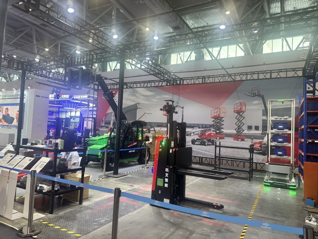 智能物流与轨道交通展区。在诺力(NOBLELIFT)展位,系列智能叉车、自动化搬运设备整齐陈列,其“全场景智能内部物流系统”解决方案,让同学们直观感受到数字技术如何重塑工业物流效率。而在轨道交通展区,多款高速列车模型展示了数字贸易在高端装备领域的赋能成果,从设计到生产的数字化链路引发师生对产业升级的深入思考。