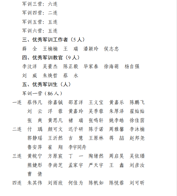 经学校评选,授予我院“优秀组织奖”荣誉,军训四营一连获“队列优胜连队”奖,四营二连获“内务优胜连队”奖;王瑞老师被评为“优秀军训工作者”。