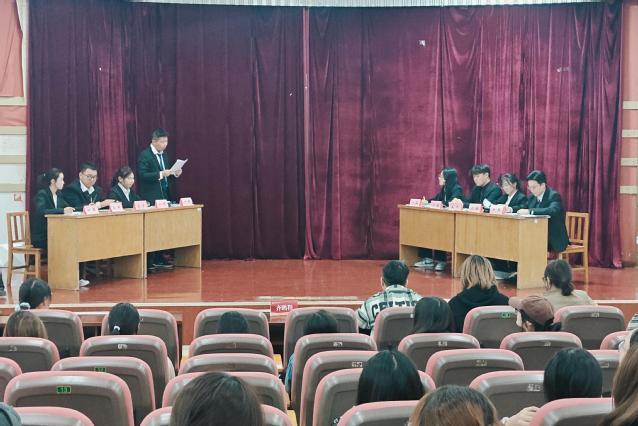 赛事伊始,主持人介绍了比赛规则、决赛议题、评委团以及辩论双方成员。在开篇明义阶段,正方与反方辩手的发言清晰,鲜明阐述了各方观点。在自由辩论环节,双方就“情绪稳定是理性调节还是情感压抑”“其评判标准权归属”等核心问题开展攻防拉锯,一时间难分伯仲。最终,经过评委合议,持“情绪稳定是当代人的枷锁”观点的反方25国际经济与贸易班,凭借观点逻辑更加连贯、立论发言更具说服力,节奏掌控更加稳定,最终赢得本场比赛的胜利。反方三辩郭倩茹同学凭借清晰的逻辑表达、灵活的攻防应对,荣膺全场“最佳辩手”。赛后评委们高度肯定了双方辩手的充分准备与优异表现,共同为全场观众奉献了一场“针尖对麦芒”的精彩比赛。