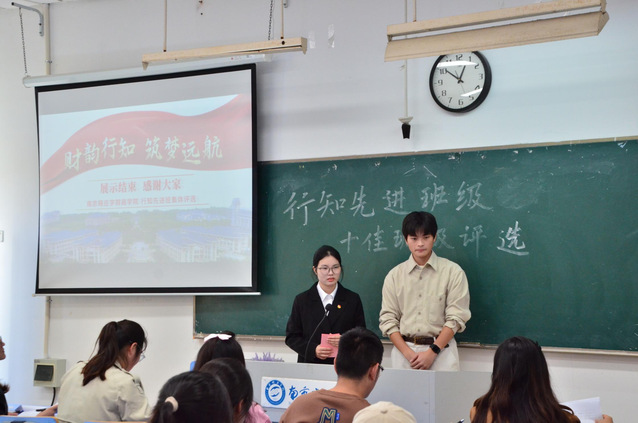 为深入贯彻落实党的教育方针,扎实推进优良学风班风建设,充分发挥先进班集体在“三全育人”格局中的示范引领作用,10月24日中午,商学院在元培楼103教室组织开展2024-2025学年“行知先进班集体”“十佳班级”评审会。学院评审小组成员、3支参评班级代表及2025级全体新生班长共同参与本次活动。