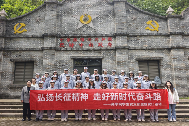 据悉,商学院学生党支部结合长征胜利90周年,精心谋划、系统推进“弘扬长征精神,走好新时代奋斗路”系列党日活动,构建起“沉浸式体验+多维度宣讲+广覆盖传播”的立体化精神传承体系。通过开展精品微党课、党员先锋宣讲、“两微一端”线上推送、班级跑班宣讲等多样化形式活动,打破活动边界、拓宽传播渠道,将长征精神的时代内涵与青年担当融入宣讲内容,引导全院学子从长征精神中汲取奋进力量,凝聚起 “知史爱党、知史爱国、笃行实干、奋勇争先” 的强大合力,让精神的火炬照亮前程,让长征精神在新时代商院代代赓续、永放光芒。