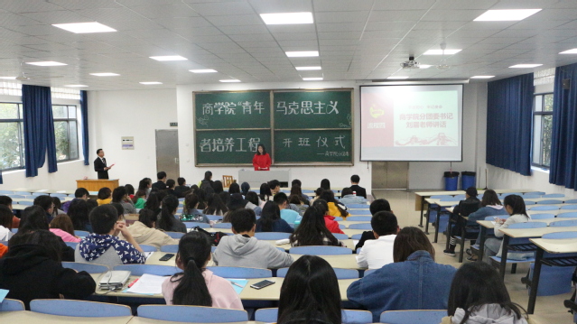 10月30 日下午,商学院分团委第六期“青年马克思主义者培养工程”初级班开班典礼在北演讲厅举行。商学院分团委书记刘眉、分团委副书记龚雪及全体青马工程班学员参加了本次典礼。